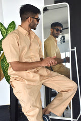 Elevate your statement style with this comfy and classy Beige Co-ord Set for men! Featuring cargo pockets and a relaxed fit with large side pocket, this stylish set is great for all occasions. Breathable cotton means you'll stay cool, and you can wear it together or solo for multiple looks to fit any occasion. The must-have wardrobe piece for breezy, coastal style.